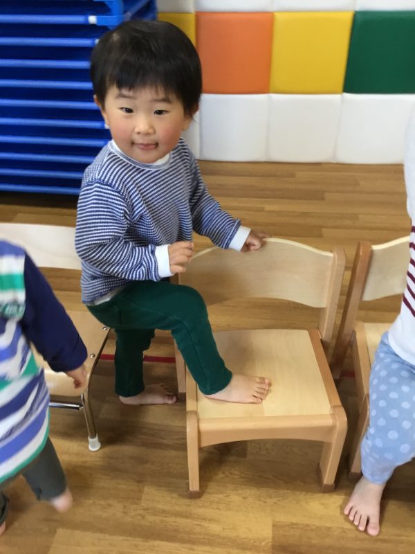 先日天気が良くなかった日に室内で遊んでいたのですが、いつもやっている体操をやり終えて「どうしようかな」と考えていると2歳さんから「イッスーしたい」とご要望が![]()