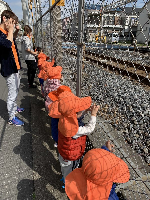 北区園のみんなは電車が好きなので踏切によく電車を見に行きます![]()