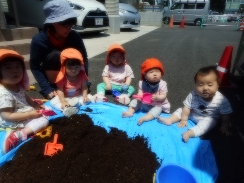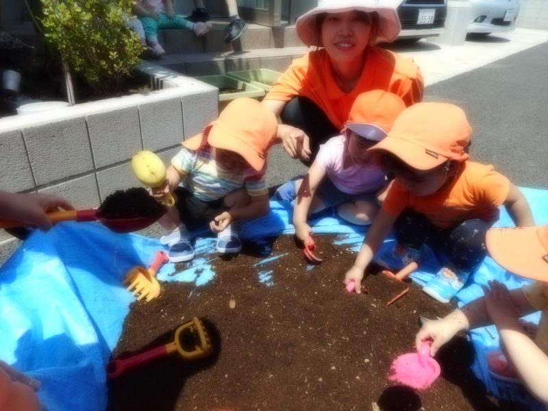 ト移して慣らして乾かしました。「あっ!何だろうこれ?」と、ダンゴムシや幼虫など沢山発見し花壇にお引越しさせてあげながら、目をキラキラさ