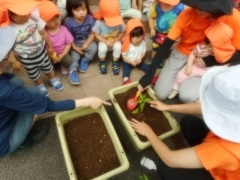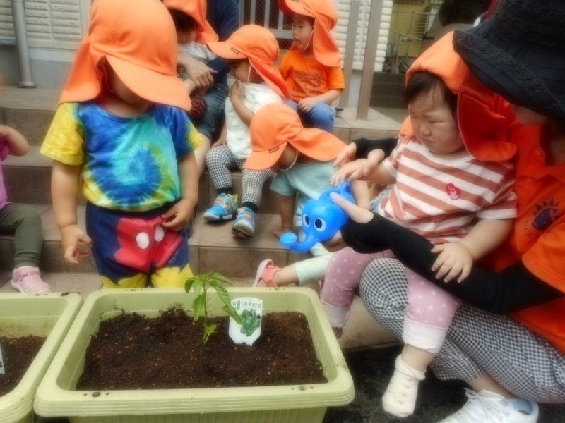 りを十分にしました。「おおきくなってね」「おいしくなぁ~れ」「はやく、おはなをさかせてね」など、気持ちを込めながら取り組みました。