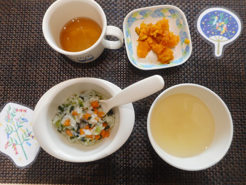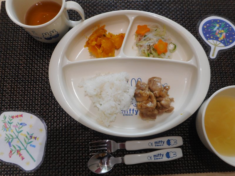 2019.07.05|給食ピックアップ 7月5日(金)幼児食・離乳食 ◆幼児食◆ ご飯、味噌汁、鶏のマーマレード焼き、七夕サラダ、かぼちゃの甘辛煮 ◆離乳食◆ しらす・ほうれん草・人参・玉ねぎ入りおじや、かぼちゃの出汁マッシュ、味噌汁(上澄み) 前へ 次へ