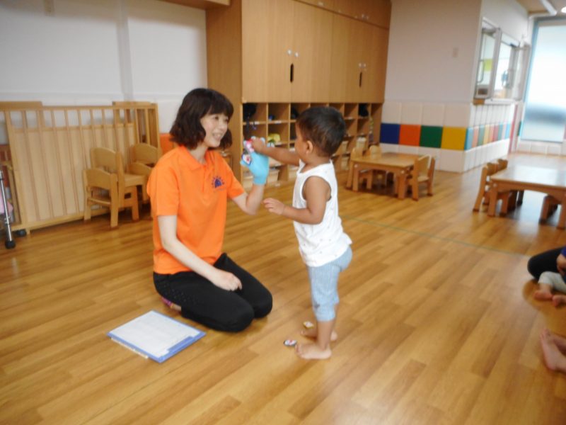 と、保育士との掛け合いの歌「どんないろがすき」が大好きな子ども達。