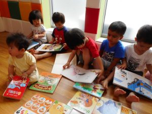 待っている間は思い思いにおもちゃで遊んだり、好きな絵本を読んだりしています。