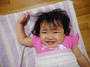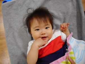 ちょうど寝る前のニッコリ笑顔をパシャリ