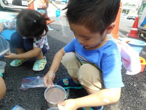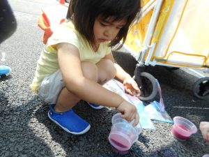 また、近いうちに遊ぶ約束をしました。今度は、食紅や花や葉っぱの汁などでも楽しんでみたいと思います。