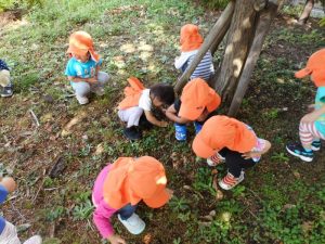 ころころしたフォルムが子どもたちにとって触れるだけで楽しいものです。自然物を探すことには体力と考える力の両方を育む