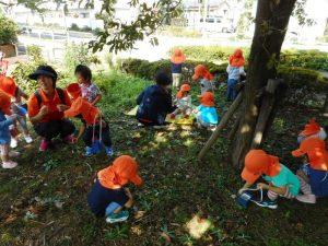 時々、面白いものを発見していました。夏の名残のセミの抜け殻・カマキリなど勇気を出して手に取ってじっくり観察もしていまし