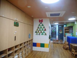 子ども達がサンタブーツや、夜空に光るお星さまを作ったり、共同制作で大きなクリスマスツリーにも挑戦しました。