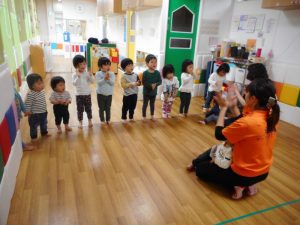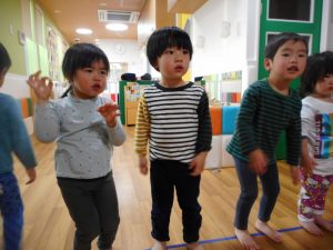 「発表したい!」とみんなが前に出てきて大きな声で振付きで披露しあいっこもできるように