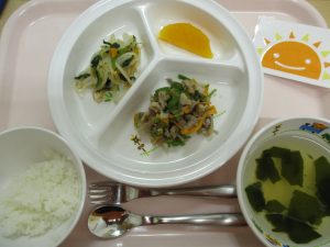ご飯 中華スープ チャンジャオロース ナムル オレンジ
