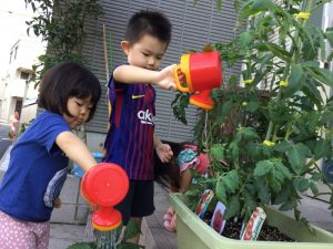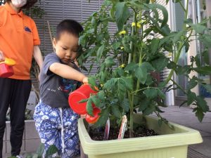 子ども達が水をあげて大切に育てているトマトやイチゴにも実がなりました![]()
