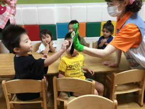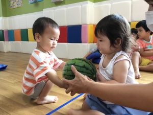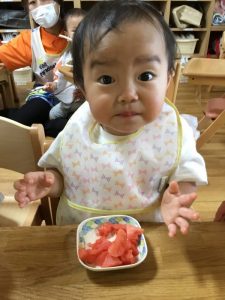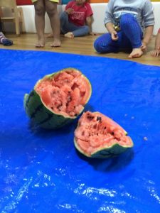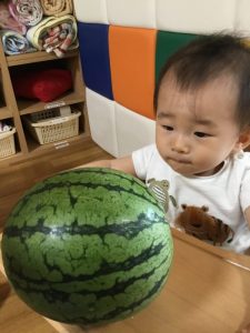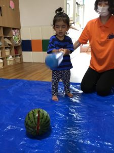 保育園ではスイカ割りをして夏を楽しみました![]()
