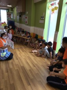大型絵本の「えらいえらい」を先生が読みました![]()