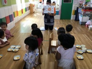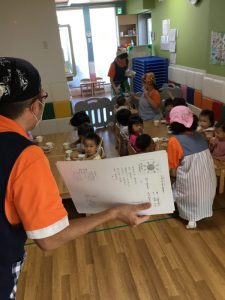 今日は絵本ではなく、紙芝居で読み聞かせを行いました