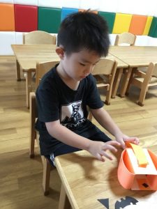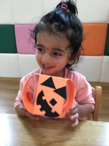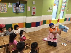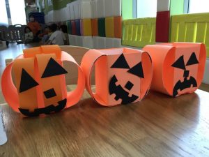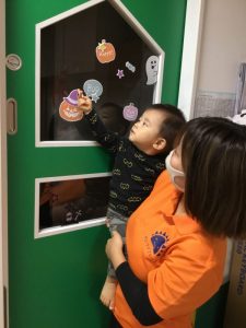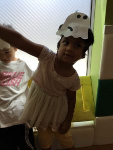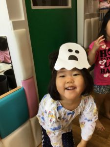 おばけのお面をつけて「おばけのバケちゃま」という曲を踊ったり、