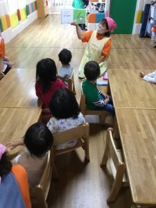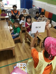みんなで声をだして元気に答えてくれて