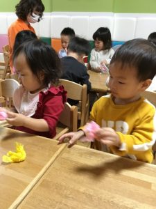 クッキーは粘土でこねこねと触感を楽しみながら行いました![]()