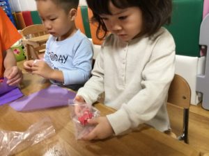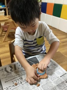クッキーは粘土でこねこねと触感を楽しみながら行いました![]()