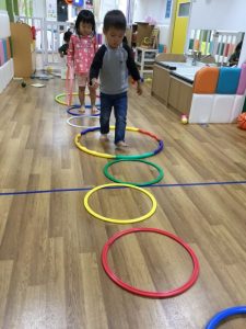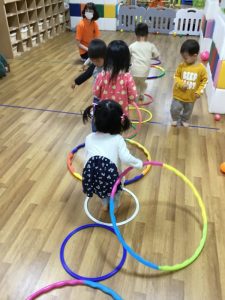 フラフープを出してみんなで楽しくジャンプジャンプ!