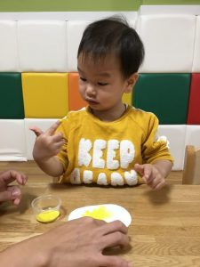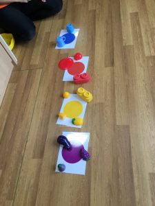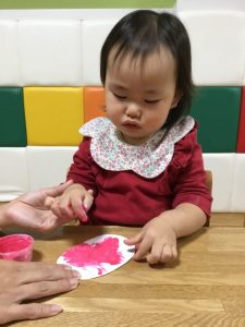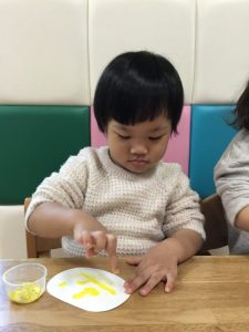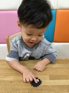 楽しく身の周りや子どもたちの衣類の中から色を探すゲームを行っています