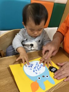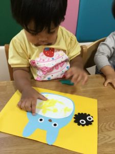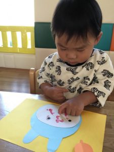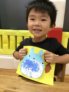 トトロのおなかの模様を絵具の好きな色で塗っていきます。