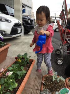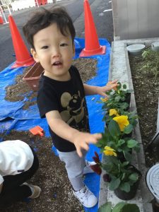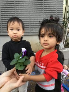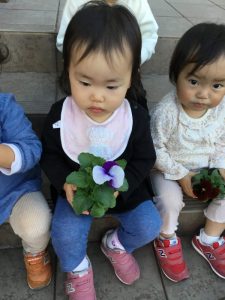 可愛いお花に子ども達も興味津々です![]()