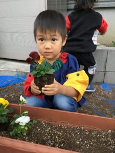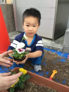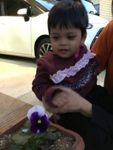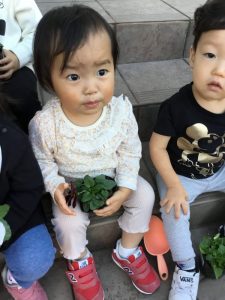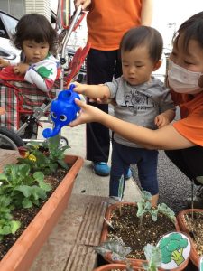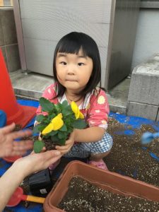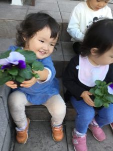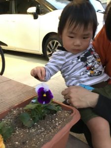可愛いお花に子ども達も興味津々です![]()
