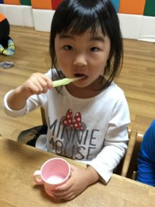 食後の歯磨きがスタートしました![]()