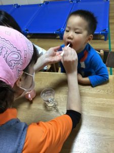 仕上げ磨きは大好きな担任の先生に