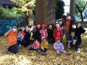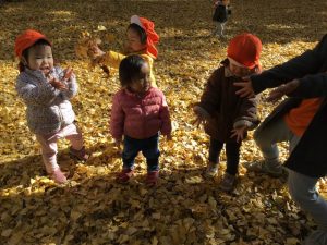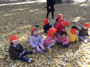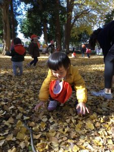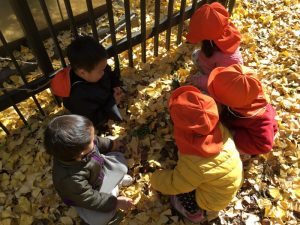 イチョウが沢山落ちている今の時期ならではの遊びや感触を楽しんでいましたよ