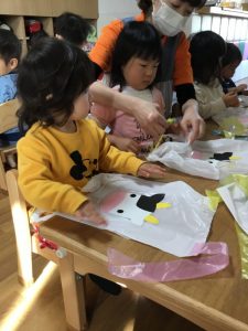新年初めの1週間は「凧」を子ども達が作り、凧上げを中央公園で沢山楽しみました