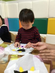 うしさんの顔が出来ると好きなシールを沢山ペタペタと楽しんで