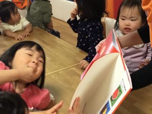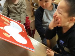 みんなで絵本のおもちを美味しくいただきました(笑)