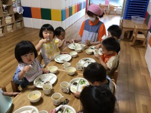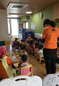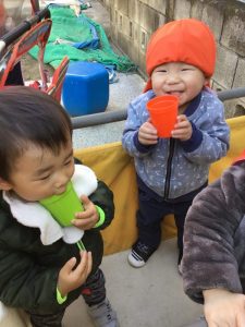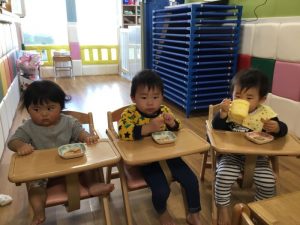 ももぐみさんも沢山身体を動かしてニコニコでお茶タイムです