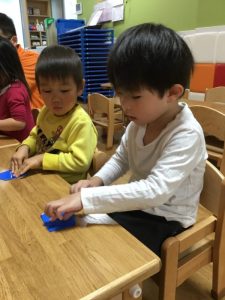 【りんご組さん】は折り紙を三角に織るのに