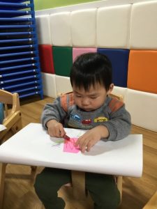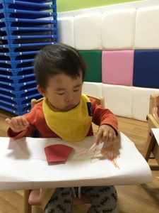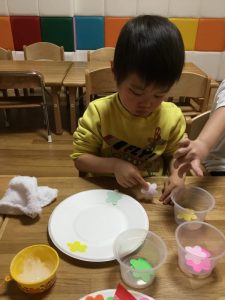 のりづけも最初はのりに全部のお手てをいれていましたが、