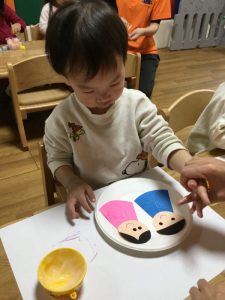 お顔を描いて・・・「出来た~!」と見せてくれました