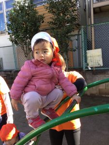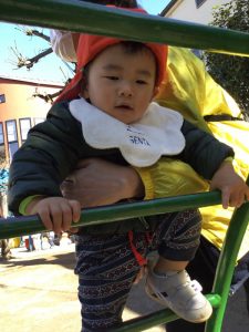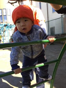 公園の太鼓橋も上手に登れるようになったお友達が増えてきて上まで登れるとニッコリ