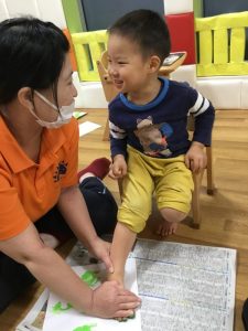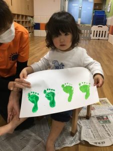 足の裏に絵の具をぬりぬりすると