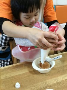 ニコニコで生クリーム絞りが上手にできる姿を見せてくれる子もいました![]()