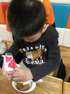 おやつは生クリームを先生と一緒に自分で絞りました![]()