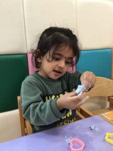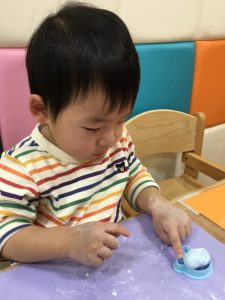りんごぐみさんへのプレゼントづくりに紙粘土をかたどっていますよ