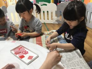 完成したものは卒園式に飾りますので