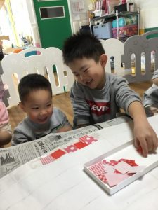 完成したものは卒園式に飾りますので