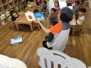 子ども達も興味津々で絵本に聞き入っていましたよ![]()