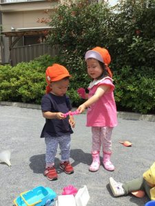 お外では新しい砂場道具が増えたので子ども達もとっても嬉しそうに遊んでいましたよ![]()