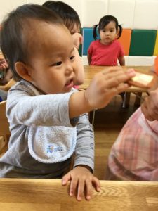 」と食べるまねをしてニコニコする姿が可愛かったです![]()