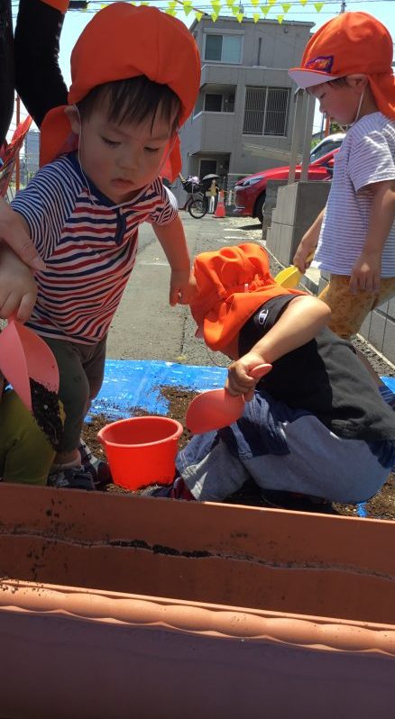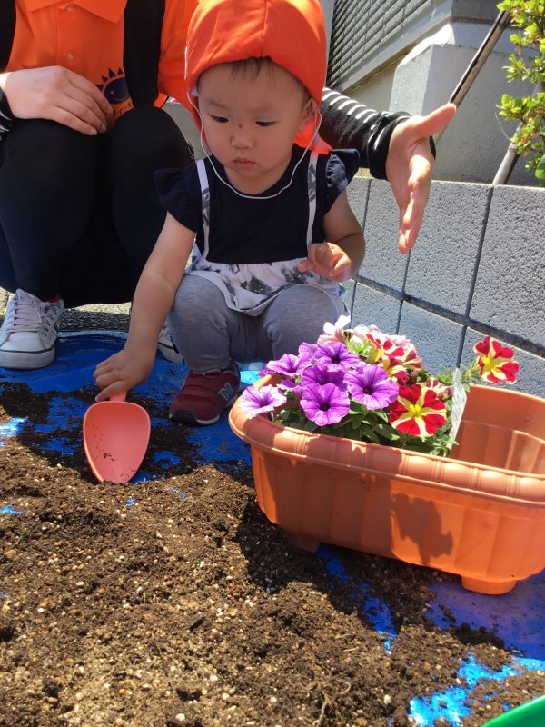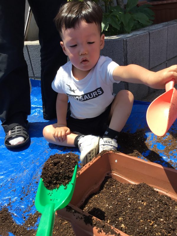 と順番にお花の為に土をプランターに入れてくれました