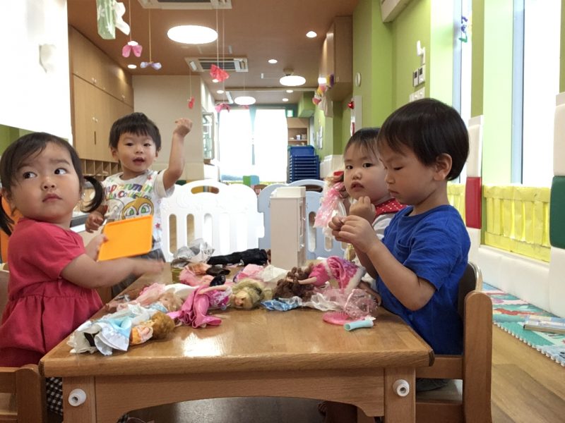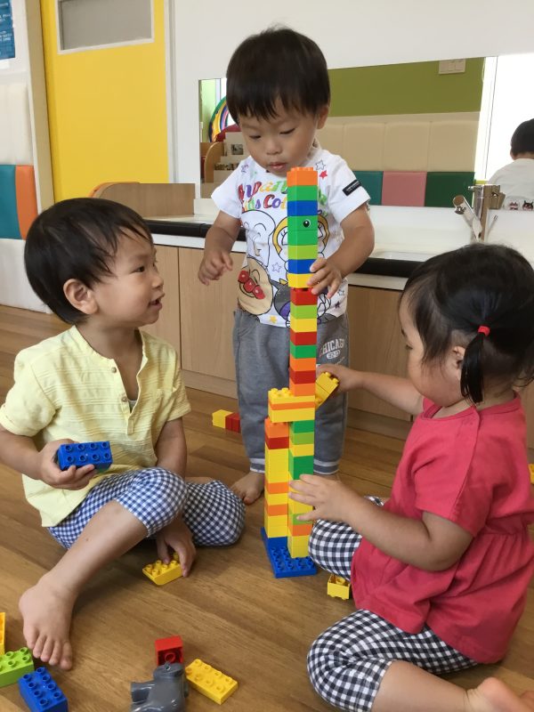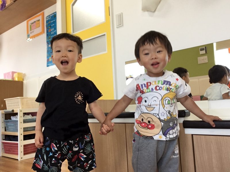 お友達と遊ぶ事が楽しくて「楽し~」と言ったり、お互いの名前を呼びながら