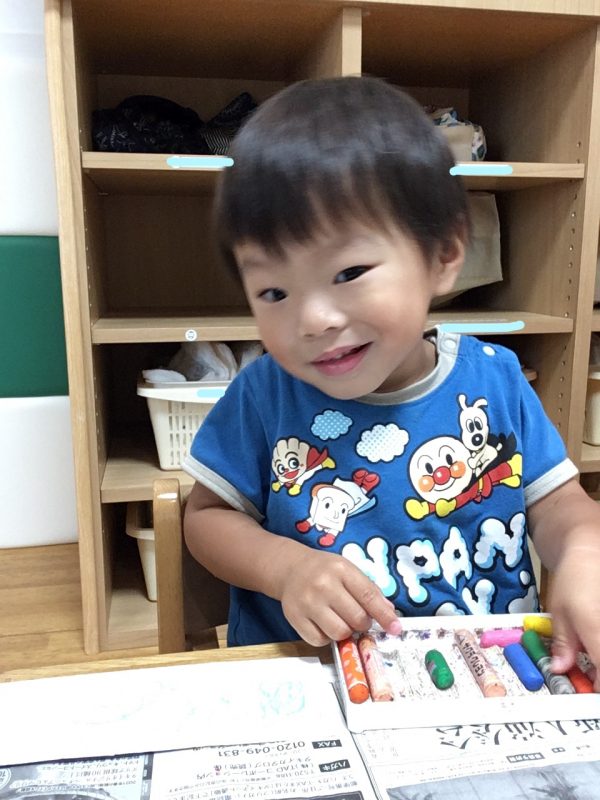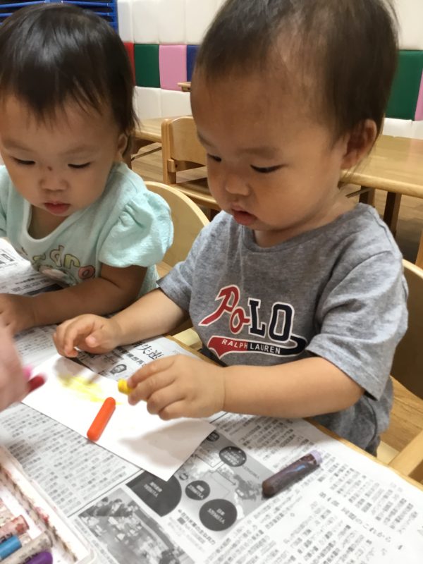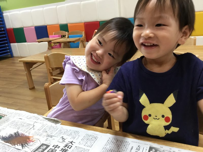 「クレヨンで好きな模様を描きました出来上がったポイで遊ぶのが楽しみですね
